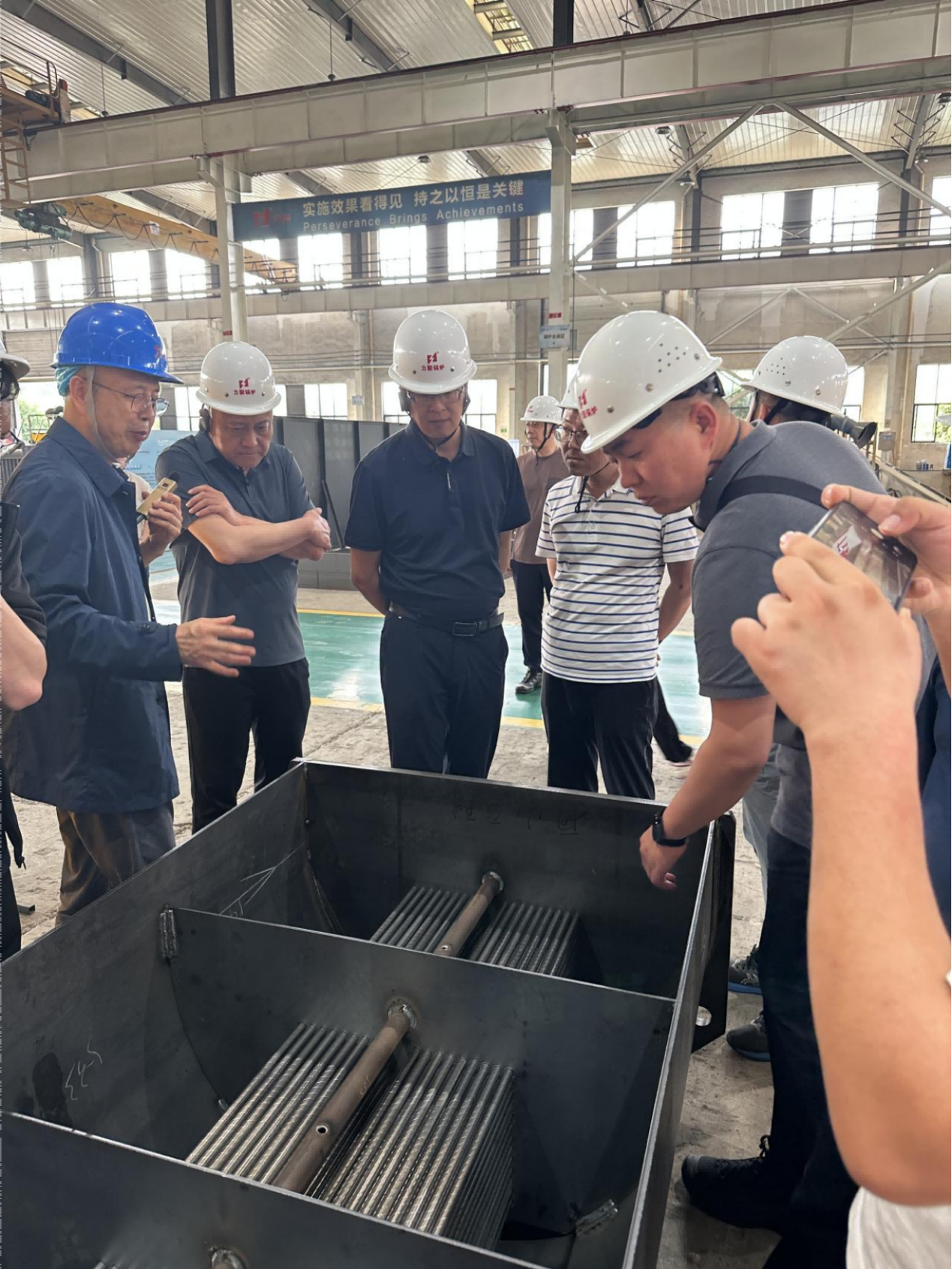 何俊南董事长特别介绍了企业在传统燃气锅炉与热泵耦合应用领域的创新实践,双方就耦合系统中热泵与燃气锅炉的配比优化、运行工况协同等关键参数达成技术共识。随后,考察团实地参观企业新旧厂区,深入了解中小型真空锅炉与大型锅炉的设计原理、焊接工艺及质量检测流程,全方位掌握真空锅炉技术特性,为破解北京燃气供热低氮改造难题提供了新思路。