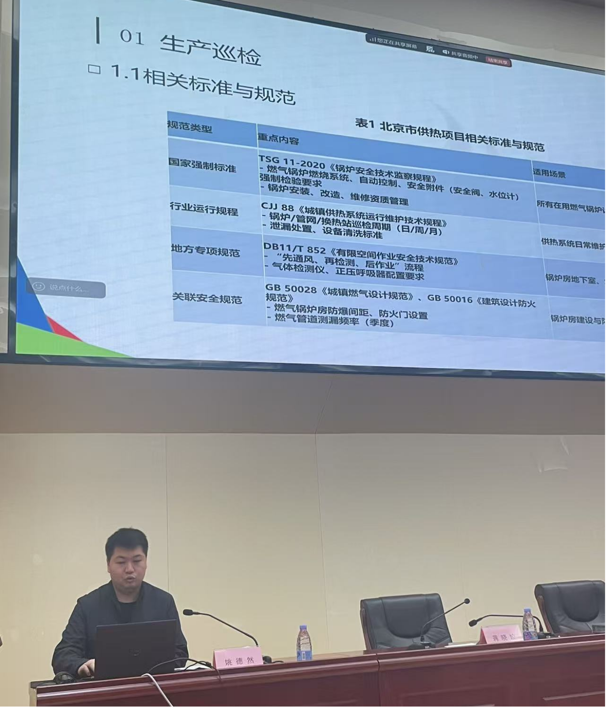协会宣讲团成员,北燃房山供热有限公司姚德然开展《锅炉房规范化管理与高效运行——安全·调节·应急全流程解析》专题宣讲,遵循“筑牢基础-提升效率-守住安全底线”逻辑主线,系统讲解生产巡检核心规范与清单化管理要求,分析了水力平衡技术的难点和路径,聚焦防火、防触电、有限空间作业三大关键场景,明确安全操作规范与极端天气应急处置流程,并结合典型事故案例强化安全警示,夯实供热单位安全运维意识。