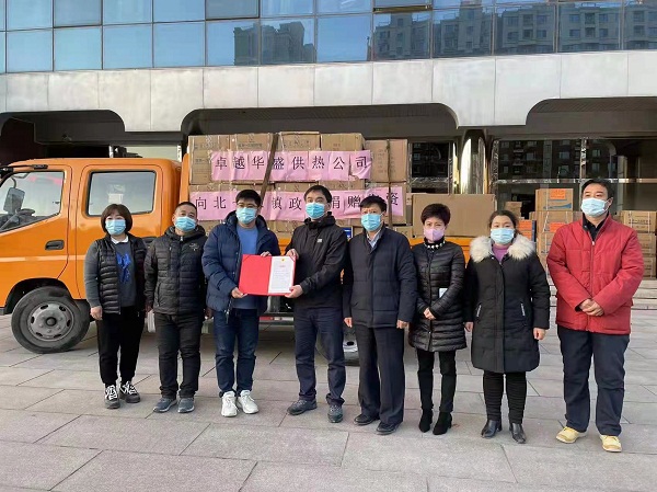 卓越华盛供热公司在保障公司员工安全、准时供热的前提下,同时得知在宏福苑小区工作的志愿者近3000多名,每天供应1万多份盒饭。董事长梁登山在得知情况后,向宏福集团湖湾酒店捐赠大米3000斤、鸡胸肉2400斤、鸡腿2400斤;并向昌平区统战部、区工商联、团区委、红十字会等多个相关部门捐赠防护服2200套、N95口罩20000只、一次性手套15000副、护目镜4960只,总价值十万余元,做到一方有难,八方支援,为疫情防控献爱心。