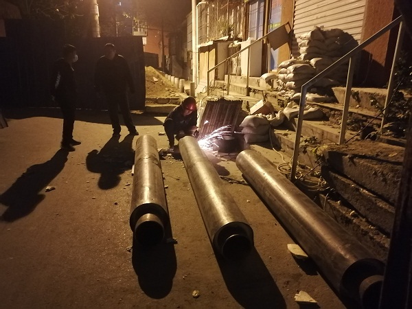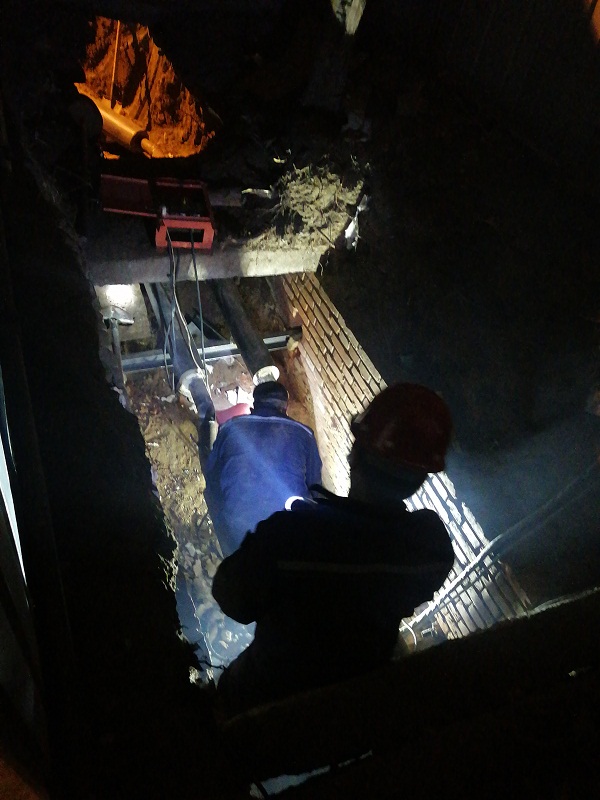 11月2日下午2点,供暖巡察人员发现平乐园小区201号楼东侧暗沟内有水渗出,虎城供热随即组织工人进行应急抢修。地面开挖后,发现漏水原因是开发商建设中遗留了两根DN65的甩头管线出现腐蚀,而造成泄漏。由于暗沟只有一米高,空间极其狭小,给抢修工作带来极大难度。抢修工人只能蜷缩在满是淤泥的沟内施工作业。经过4个多小时的奋战,该区域恢复了正常供暖,确保降温天气来临前小区居民能够提前享受温暖。