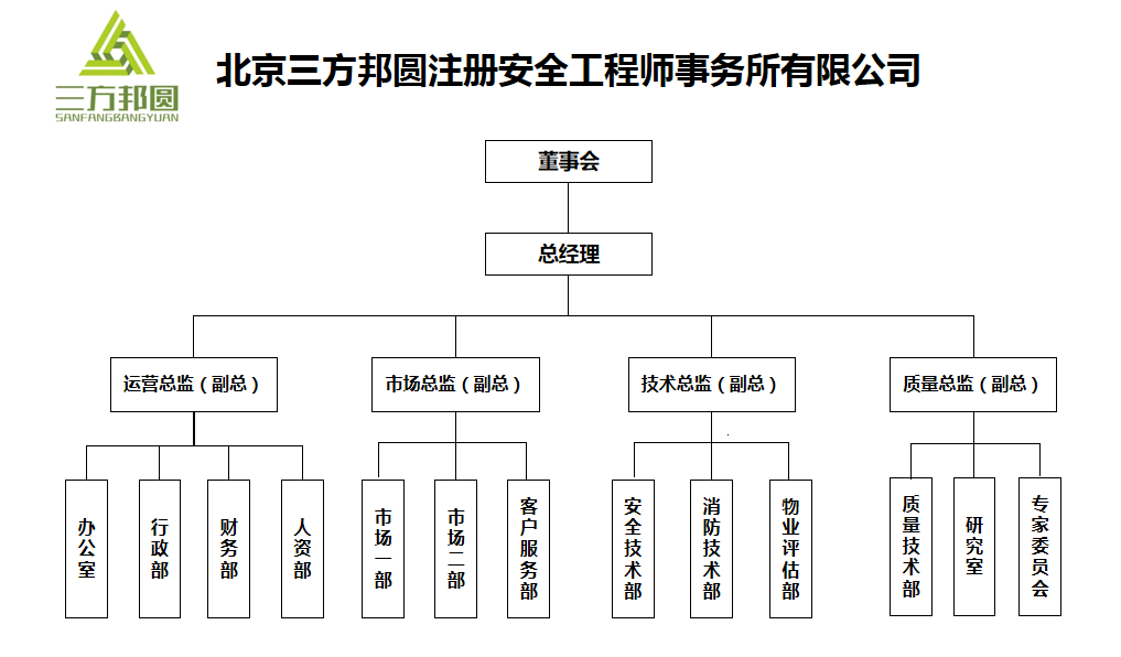 本所内设有综合部、市场部、技术部、业务发展部、质量技术部、研究室、专家顾问组等部门,现有专兼职专家30余名,其中具有高级、中级职称人员占70%以上,包含注册安全工程师、注册消防工程师、安全评价师、建造师、应急救援员、培训讲师等专业技术人员。技术团队在工贸、市政、建筑、危化、交通、机械、人员密集场所等领域具有丰富的工作经验,多名技术骨干进入北京市专家库,致力于为各级政府主管部门及各类大中型企业提供专业的安全应急技术服务。