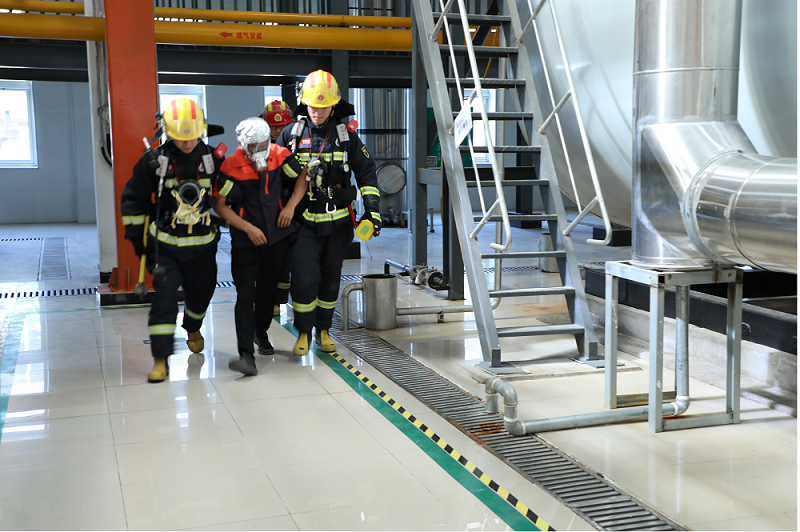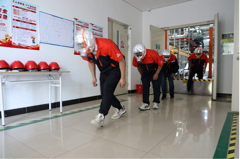 演练模拟背景设定为2024年6月19日15:00时,中控室报警,礼贤1号锅炉房内突发火情、产生大量浓烟,现场总指挥启动专项应急预案应急抢险队伍立即开展应急疏散逃生专项应急行动。
