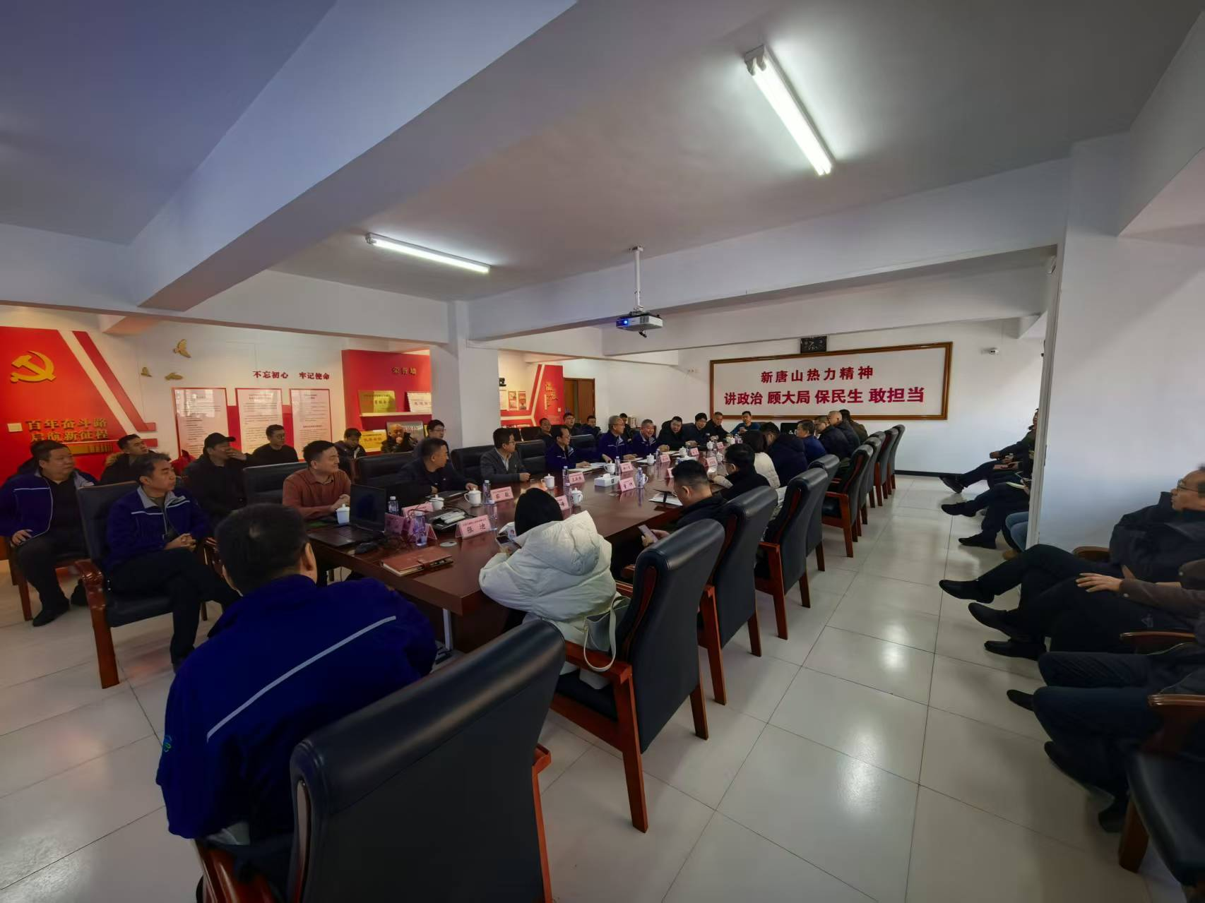 在供暖季期间,为切实筑牢供热安全防线、有效提升应急保障能力,12月17日,北京市供热协会秘书长丁琦率领考察团队,组织14家会员单位的48名代表,前往河北省唐山市热力集团开展专项考察交流活动。此次考察聚焦于安全管理软件平台建设与冬季应急抢修等核心议题,唐山市热力集团总经理任志军、副总经理郭华、副总经理韩小东以及安全部、热力输配公司的相关负责人予以热情接待。双方就相关工作深入交流经验,共同商讨保障策略。